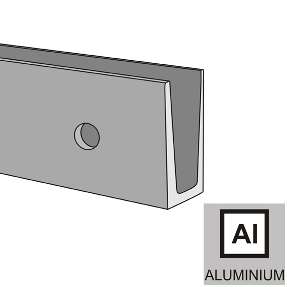 AL kotvicí profil pro sklo, boční kotvení, povrch broušený a eloxovaný, bez příslušenství.