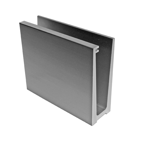 Hliníkový kotvící profil ELOX 121/45 mm pro sklo. Kotvení z vrchu do podlahy. Dodávány v délkách 2500 mm (13ks otvorů d13 mm pro kotvení). Dodávané bez těsnění. Povrchová úprava ELOX - brus.