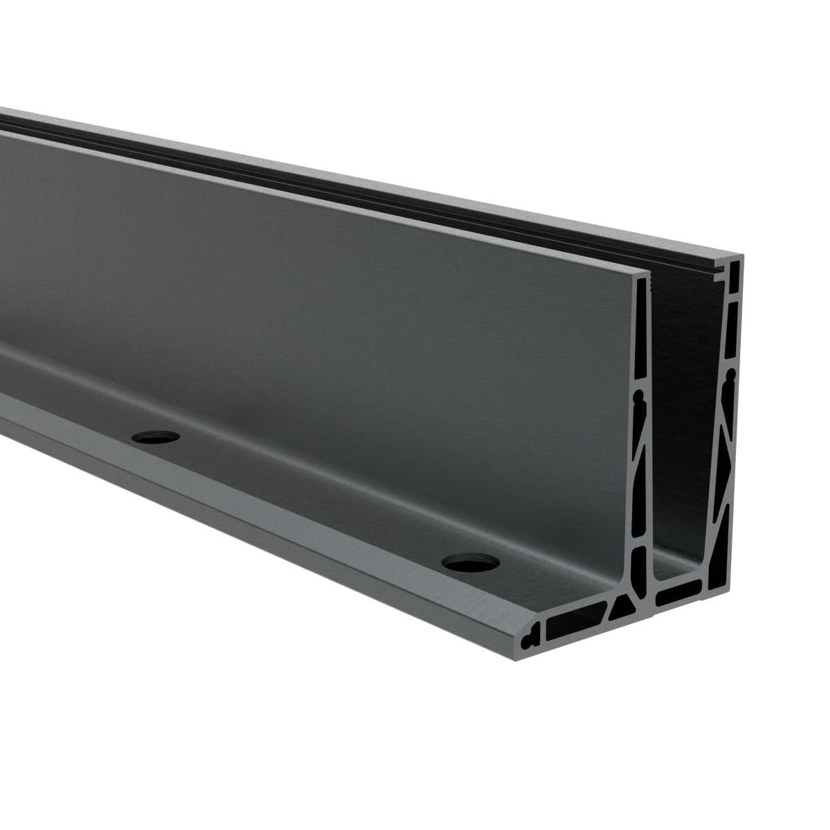 AL kotvící profil pro sklo, vrchní kotvení, povrchová úprava práškovým lakováním, odstín RAL 7016, bez příslušenství.