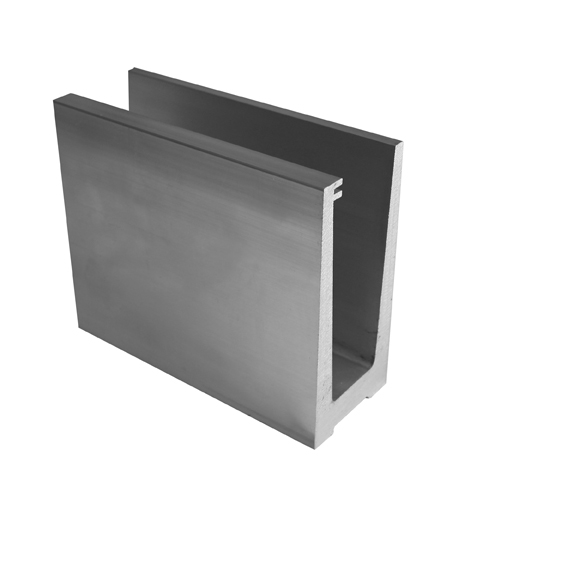 AL kotvící profil pro sklo, horní kotvení, povrch broušený a eloxovaný, bez příslušenství.