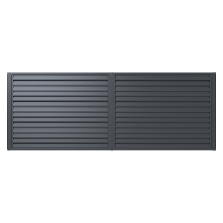 Standardní dvoukřídlová brána se dodává s klikou, avšak i k této bráně lze použít automatický pohon.