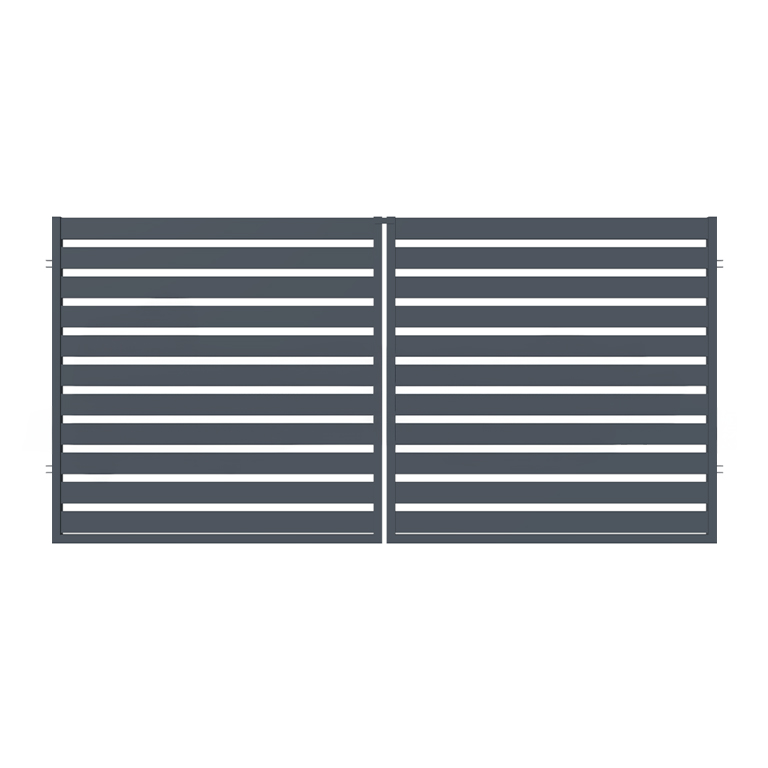 Součástí balení nejsou sloupky ani kotvící desky závěsů. V případě potřeby kotvení na jiný druh sloupku, doporučujeme zakoupit závěsy D4/53A-M16-K nebo D4/53-M16-K. Tato standardní dvoukřídlová brána je určena pro použití k automatickému pohonu a dodává se bez kliky.