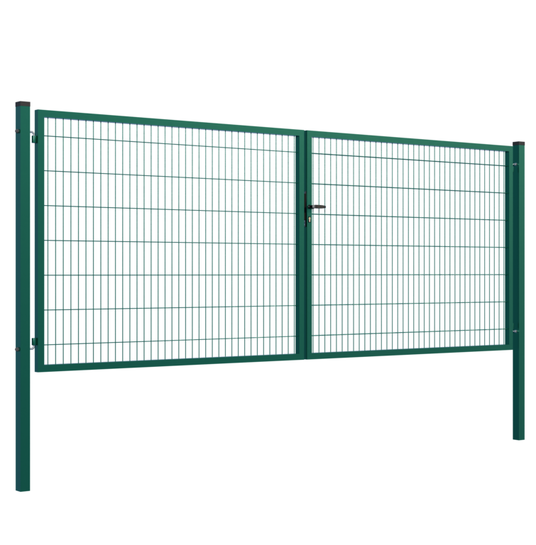 Výplň brány svařovaná síť.Rozměr oka 200x50mm.Průměr drátu 4mm. Profil sloupků 80x80x2mm.Výška sloupků 2000mm.Profil rámu 40x40x1,5mm.Povrchová úprava: ZN+RAL6005 zelená.Součástí balení je zámkova část, klika, zástrč a středový doraz.