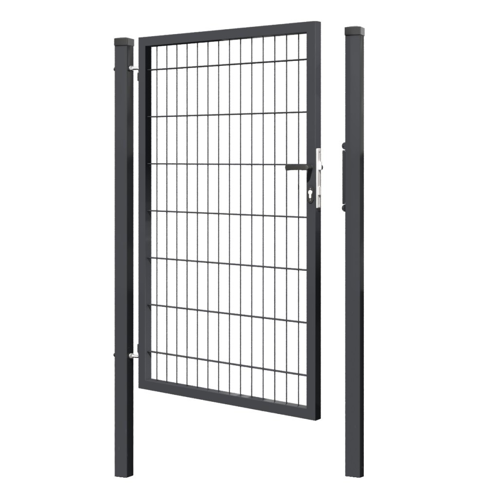 Výplň branky tvoří svařovaný 2D panel 5/4/5 o velikosti ok 200x50 mm. Výška branky je 1500 mm. Šířka branky 1000mm (samostatné křídlo branky 900mm). Profil rámu 40x40x1,5mm.
