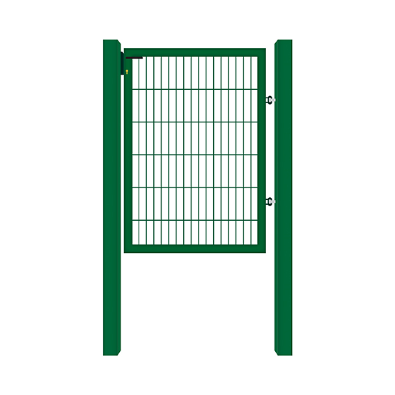 Výplň branky je svařované pletivo. Velikost oka 50x200mm. Průměr drátu 5mm. Nastavitelné pánty. Profil sloupku 60x60mm. Profil rámu branky 40x40mm. Povrchová úprava zinek + RAL6005 zelená. Šířka přechodu 970mm.