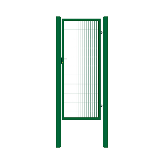 Výplň branky je svařované pletivo. Velikost oka 50x200mm. Průměr drátu 5mm. Nastavitelné pánty. Profil sloupku 60x60mm. Profil rámu branky 40x40mm. Povrchová úprava zinek + RAL6005 zelená. Šířka přechodu 970mm.