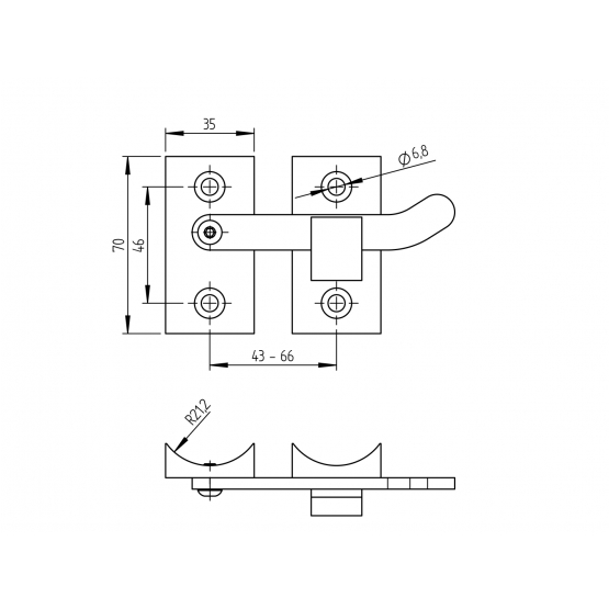 Materiál: Nerez AISI 316, Povrchová úprava: Brus, s: 46, Phi: 42,4, A: 35, a: 43-66, B: 70, d: 6,8