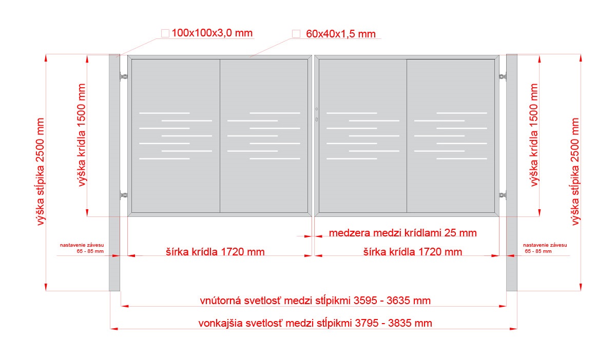 Vnitřní světlost mezi sloupky: 3560 – 3600 mm.