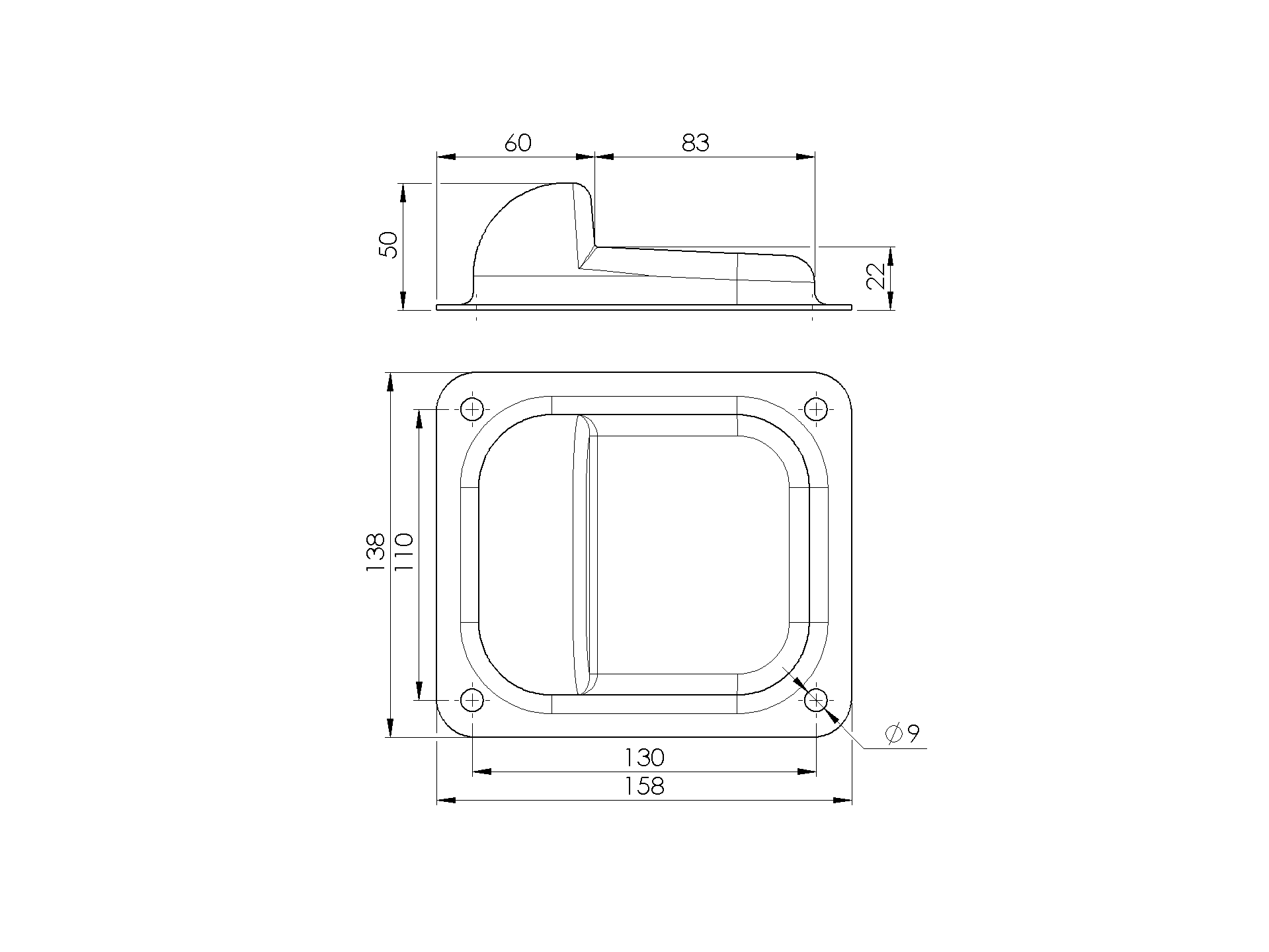 Materiál: Ocel, Povrchová úprava: Zinek, A: 158, a: 130, B: 138, b: 110, e: 60, H: 50, h: 22