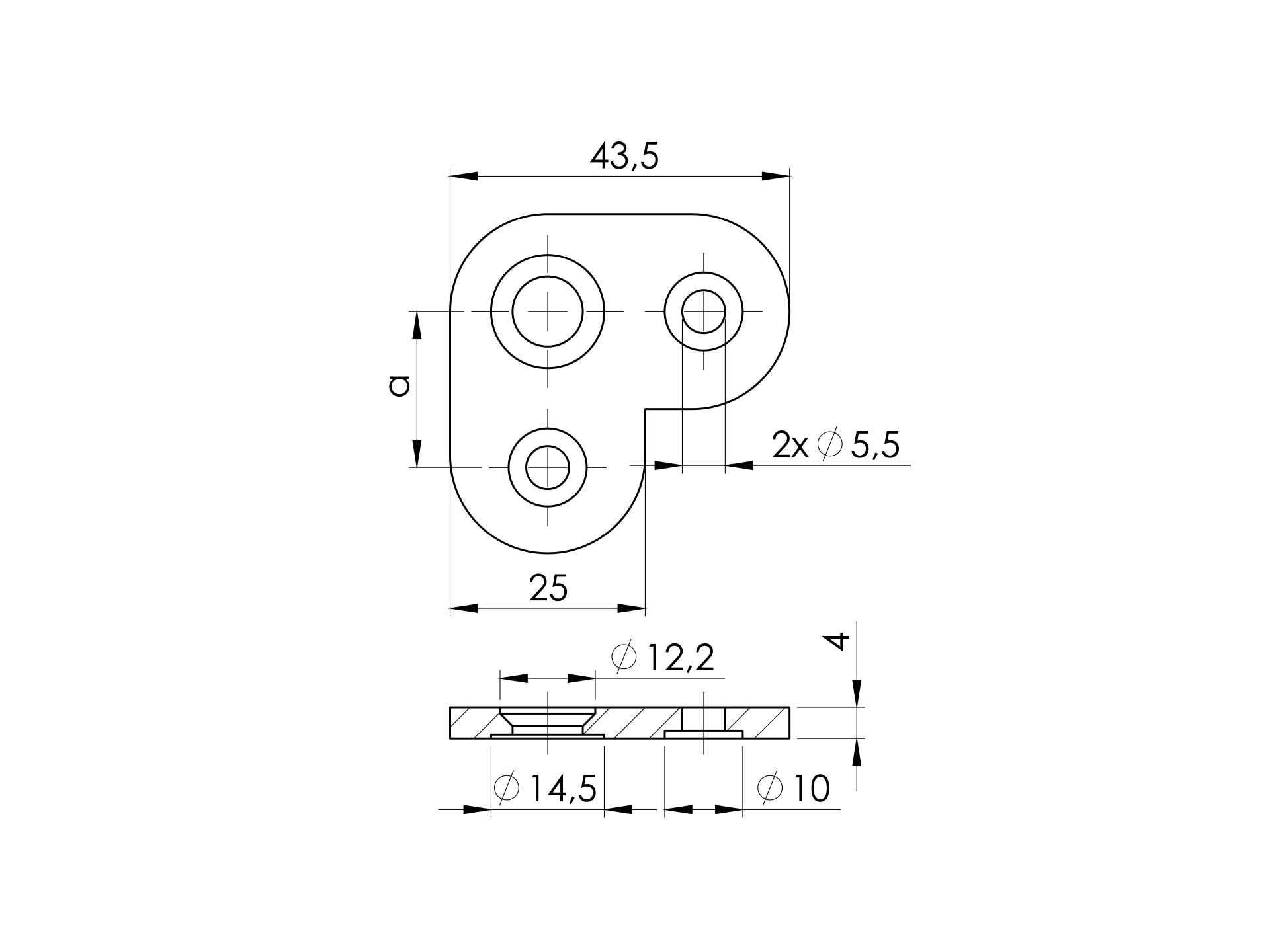Materiál: Nerez AISI 304, Povrchová úprava: Brus, Madlo: flat, Kotvení: Seshora, a: 20, Phi: flat