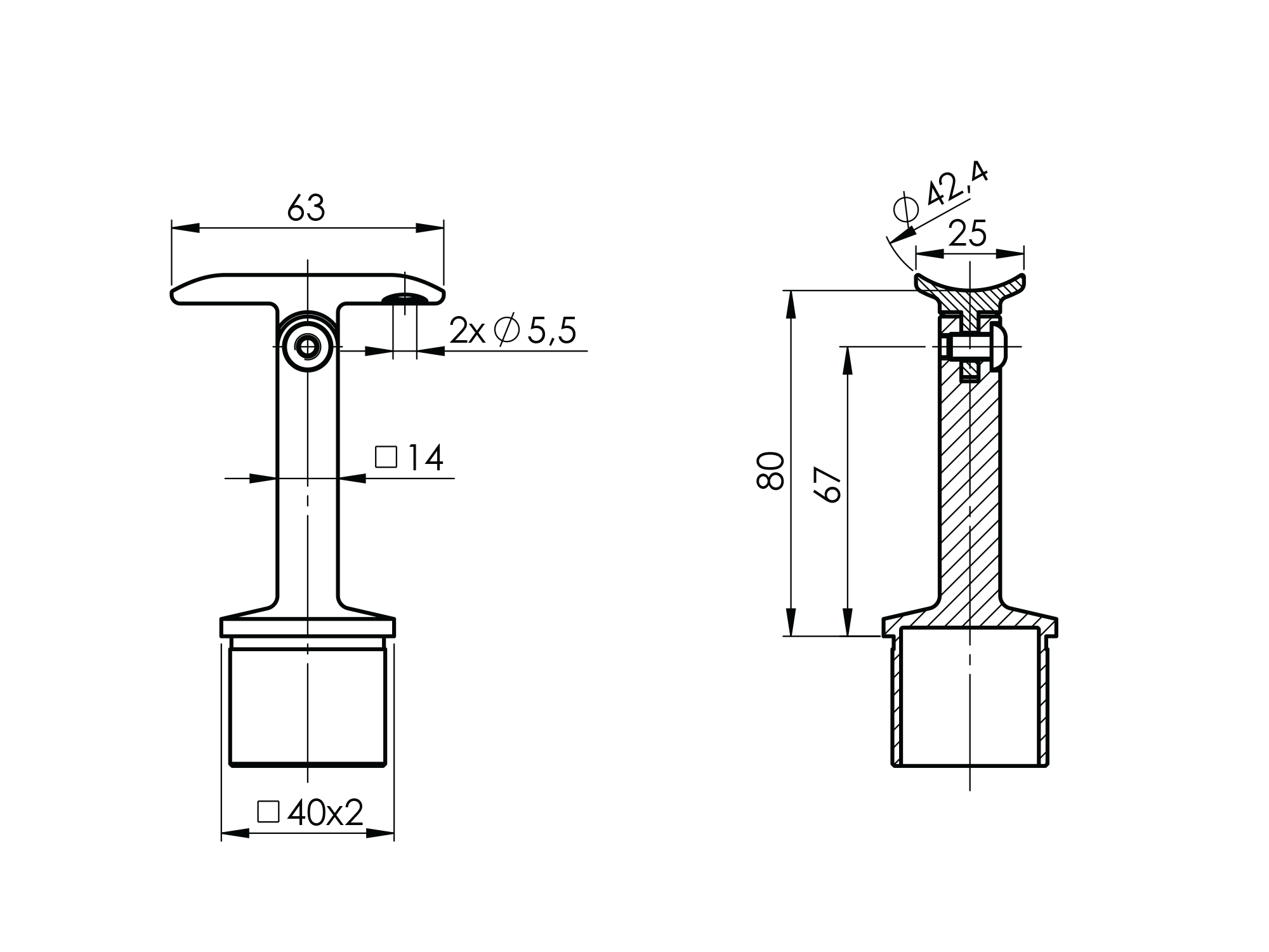 Materiál: Nerez AISI 304, Povrchová úprava: Brus, Sloupek: 40x40x2, Madlo: D42,4
