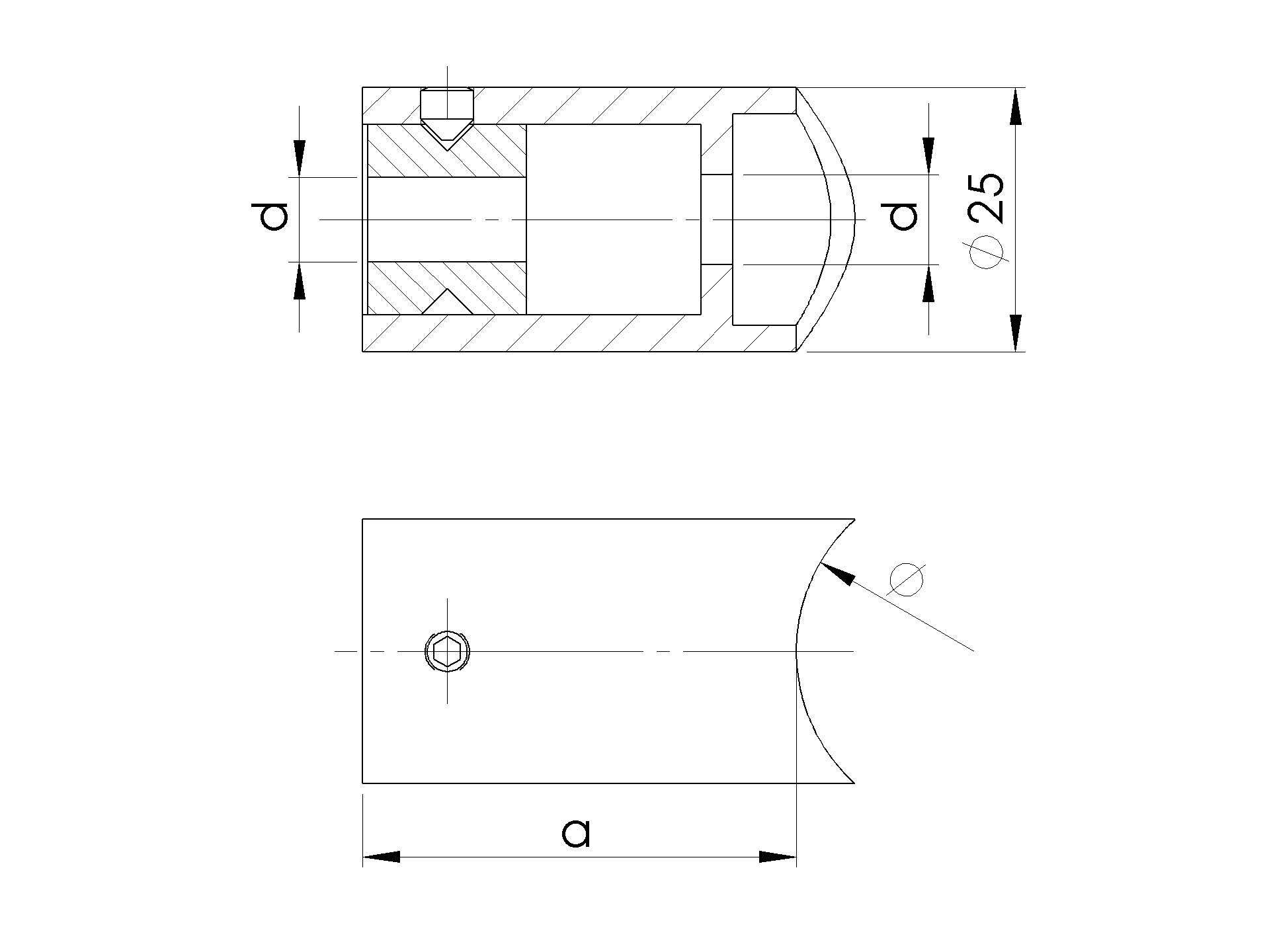 Nerezový držák madla na stěnu přímý. Montážní spoje.