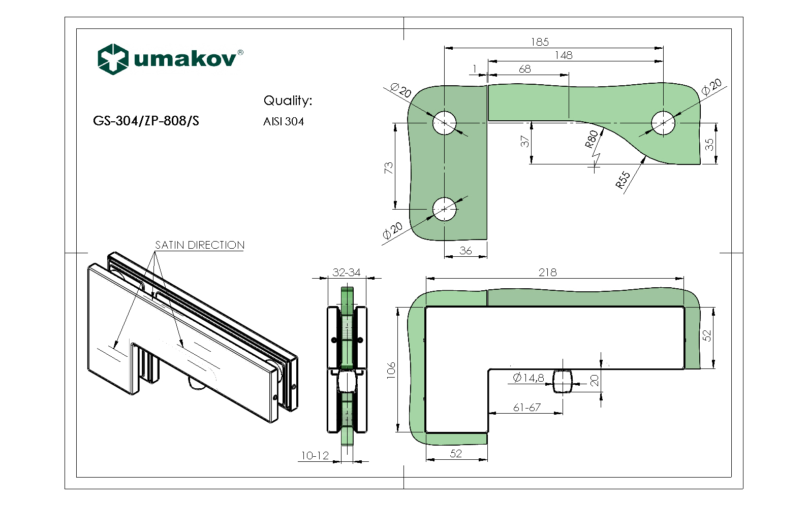 Materiál: Nerez AISI 304, Povrchová úprava: Brus, Glass t: 10-12, Otvor ve skle: Ano