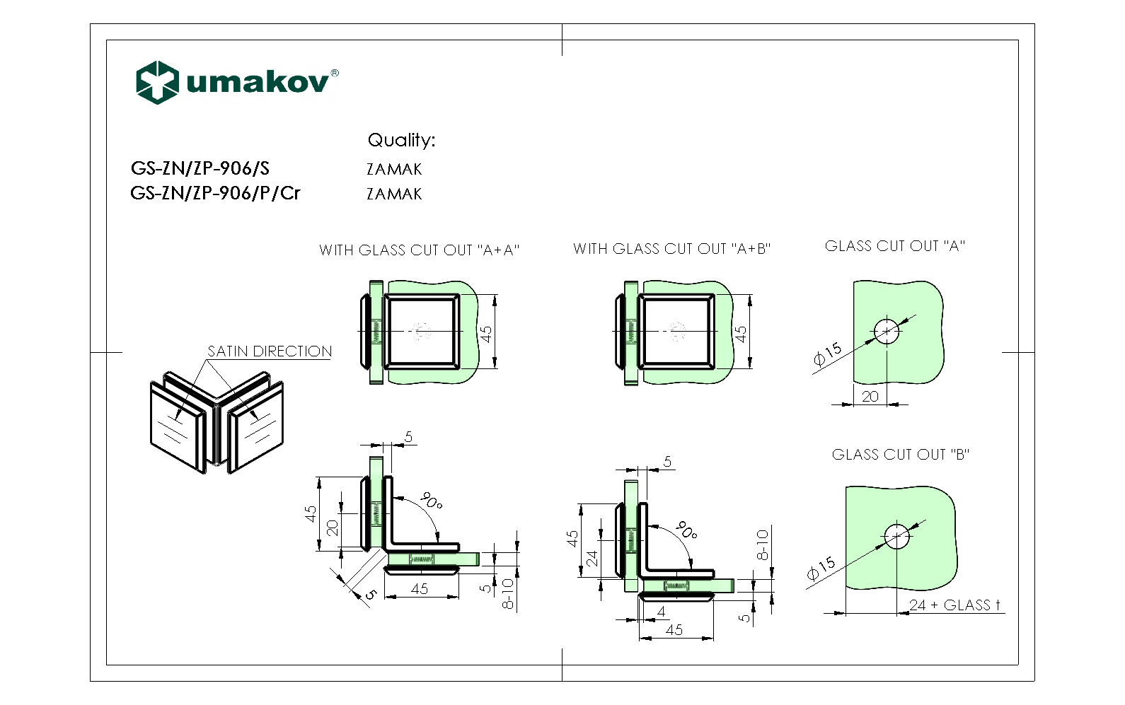 Materiál: ZAMAK slitina, Povrchová úprava: Lesk, Glass t: 8-10, Výplň: Sklo, Kotvení: Na sklo, h: 45, b: 45, Otvor ve skle: Ano