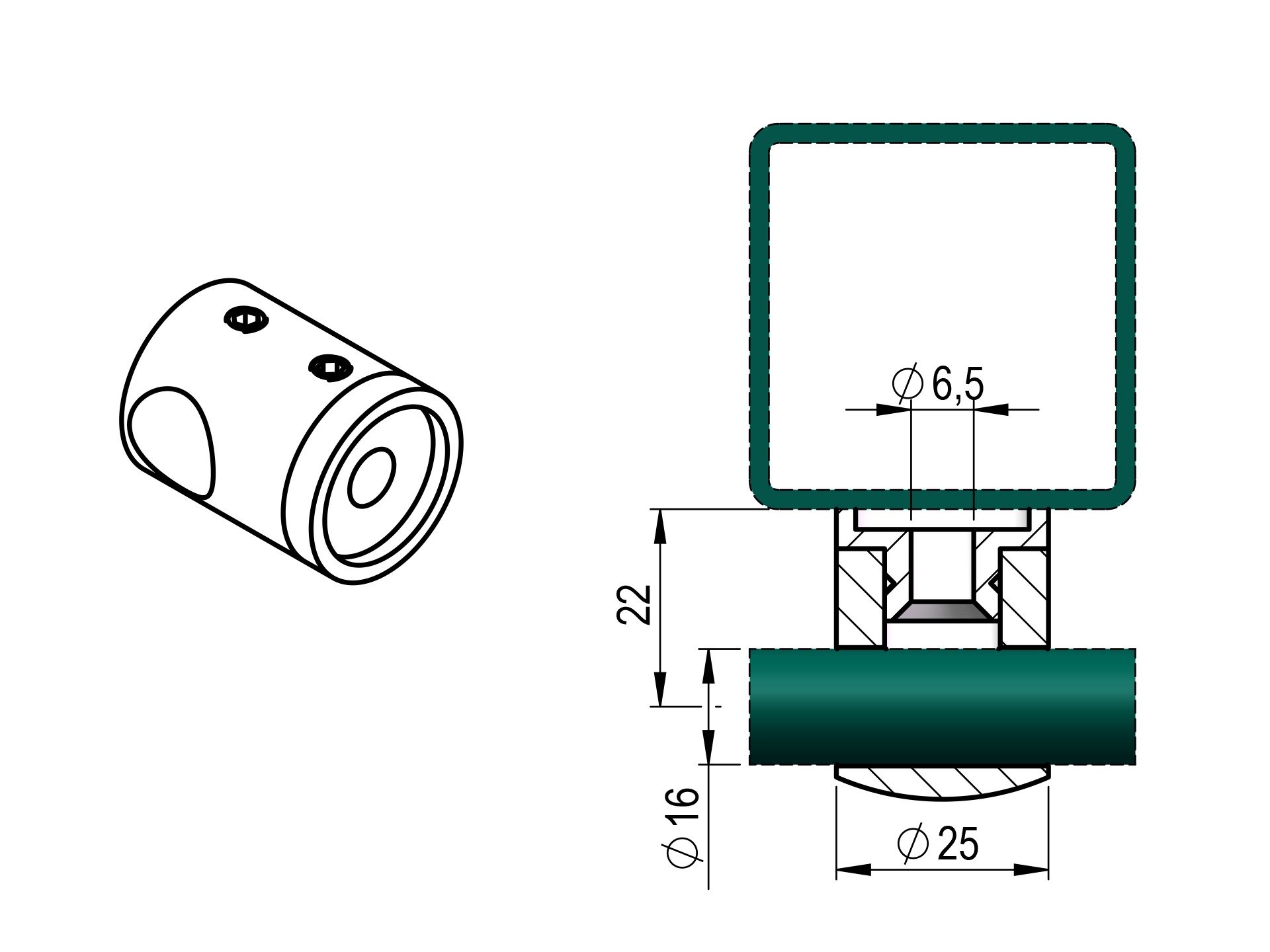 Materiál: Nerez AISI 304, Povrchová úprava: Brus, Výplň: d16, Sloupek: flat, Phi: flat