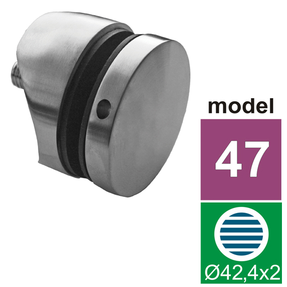 Materiál: Nerez AISI 304, Povrchová úprava: Brus, Glass t: 8-17,52, Výplň: Sklo, Sloupek: D42,4, Model: Model 47, Phi: 42,4, h: 10, M: M10x45, D: 50, d: 17, Otvor ve skle: 20