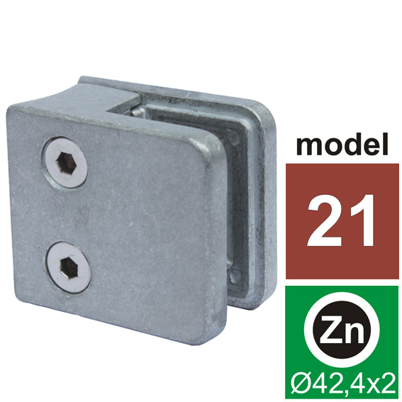 Materiál: ZAMAK slitina, Povrchová úprava: Surový stav, Výplň: Sklo+Plech, Glass t: 6/6,76/8/8,76/10/10,76/1,5/2/3, Sloupek: D42,4, Model: Model 21, Phi: 42,4