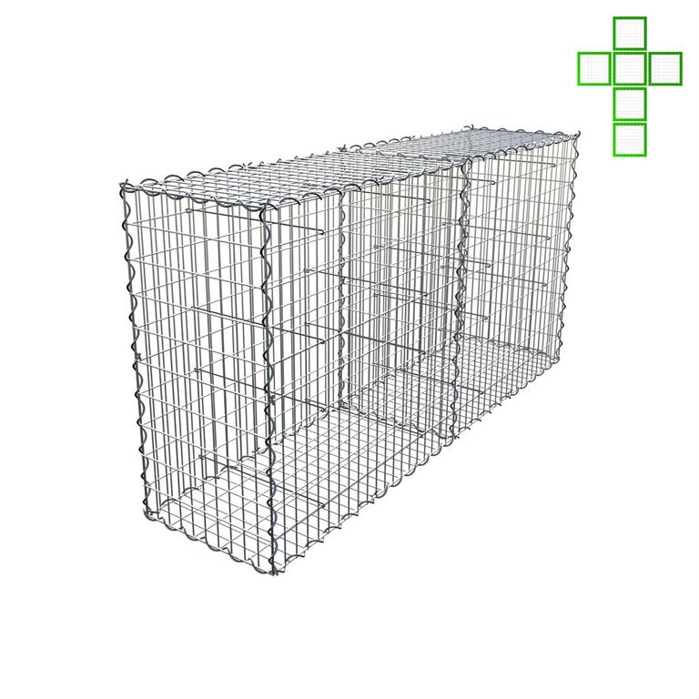 Tento gabionový koš je kompletní celek se šesti stěnami. Používá se jako koncový v sestavě nebo jako samostatný koš.
