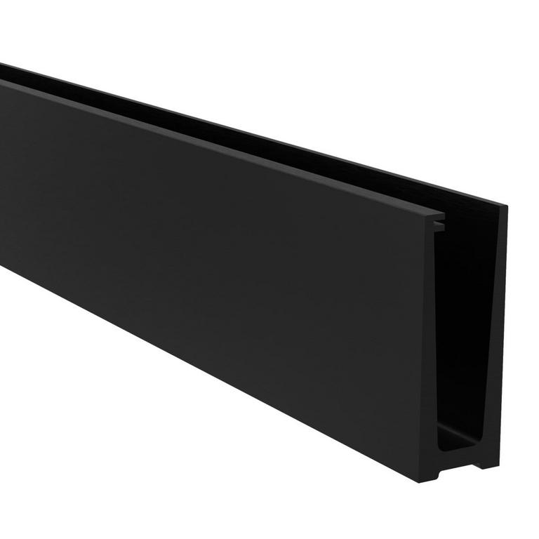 Hliníkový kotvící profil RAL 9005 / 45mm pro sklo. Kotvení z vrchu do podlahy. Dodávány v délkách 6000 mm (30ks otvorů d13 mm pro kotvení). Dodávané bez těsnění.