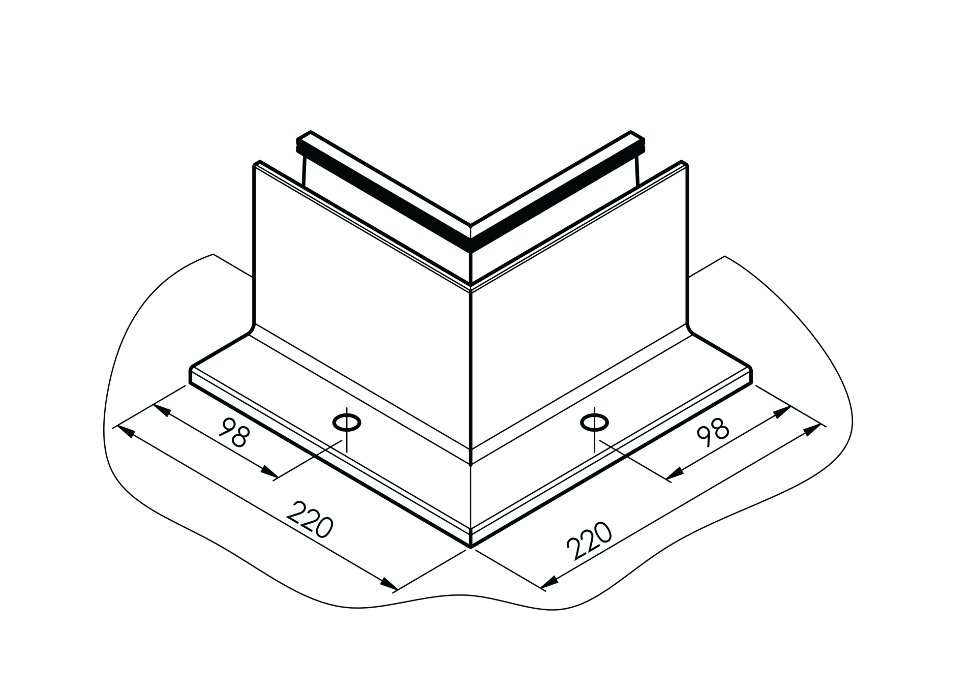 Vnitřní 90° roh pro Al. kotvící profil AL/0006...S-E, kotvení shora do podlahy.