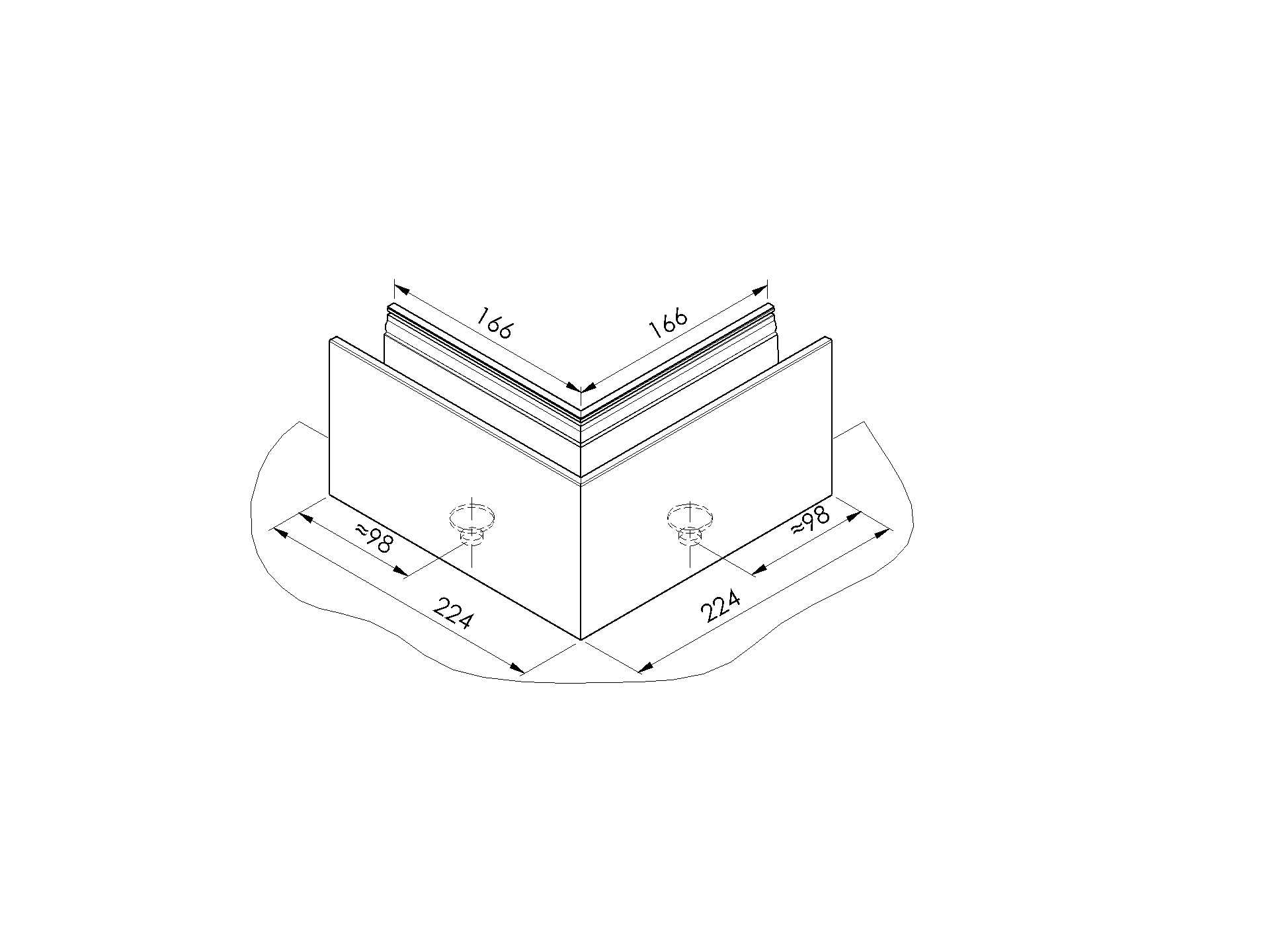 Kotvění vrchní - sklo hliník AL/ELOX/Satin L195mm,