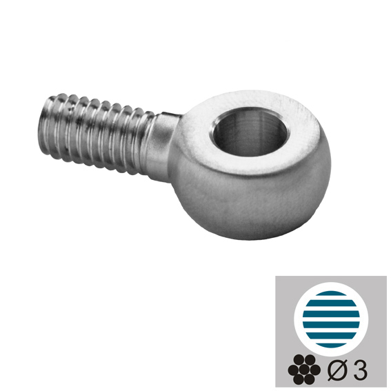 Materiál: Nerez AISI 316, Povrchová úprava: Brus, Výplň: Lanko, D: 12, d2: 6,5, h: 6, M: 6