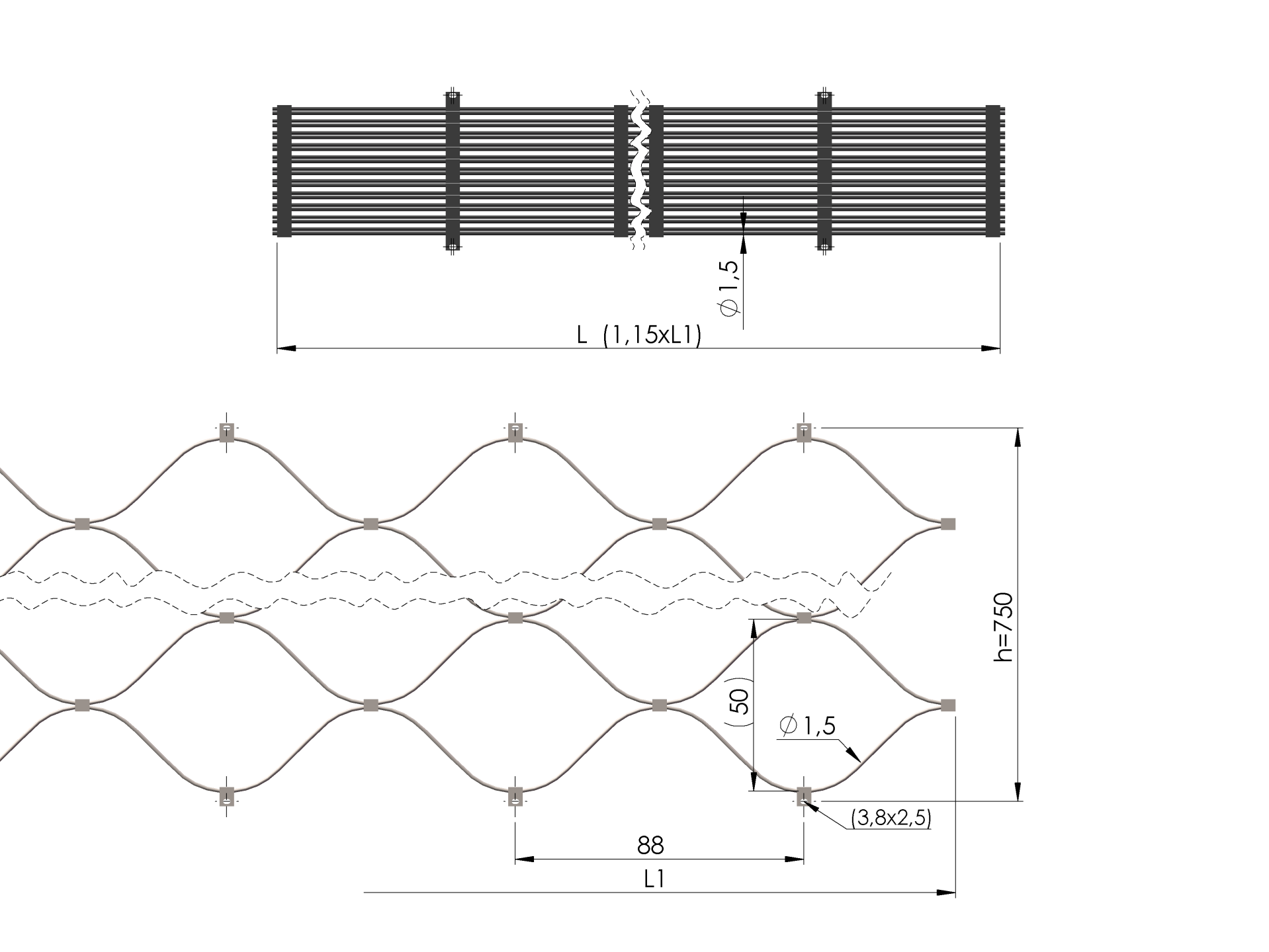 Lanková výplň (sít) se prodává na metráž ve staženém stavu. K dosažení požadované délky (s okem 50x88mm) je třeba objednat o 15% delší síť nakolik se prodává ve staženém stavu.
