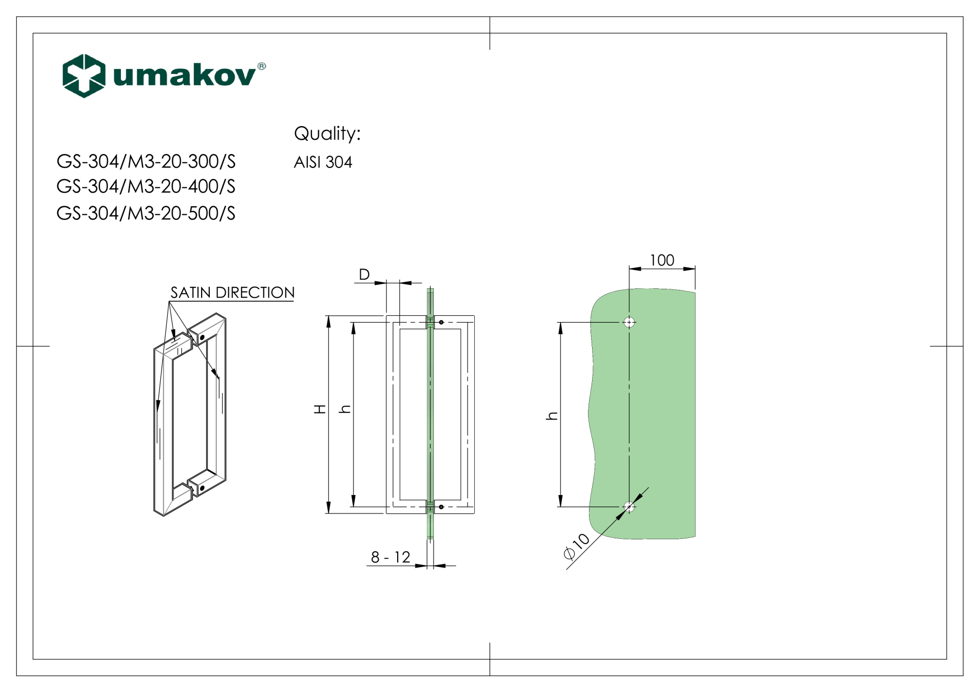 Materiál: Nerez AISI 304, Povrchová úprava: Brus, Glass t: 8-12, H: 420, h: 400, D: 20, Otvor ve skle: Ano