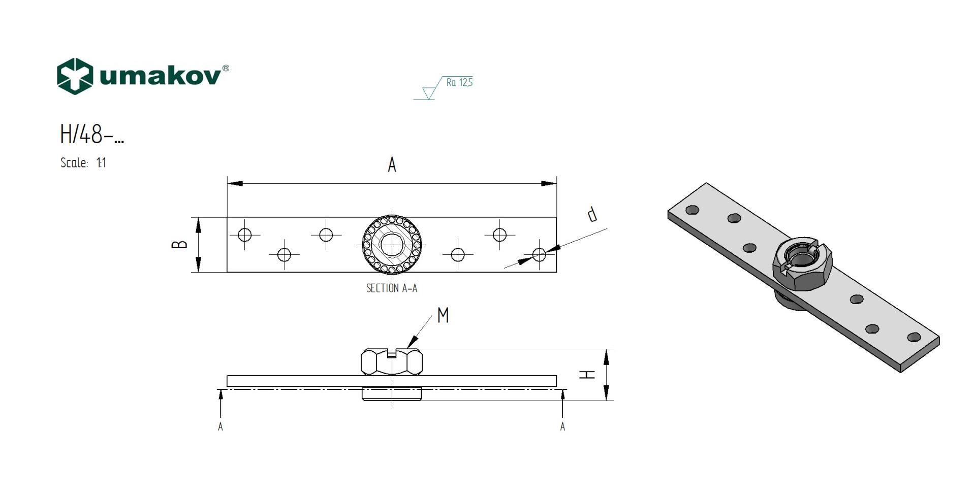 Materiál: Ocel, Povrchová úprava: Zinek, Značka: Umakov, a: 150, b: 25, d: 6, H: 24, M: 12