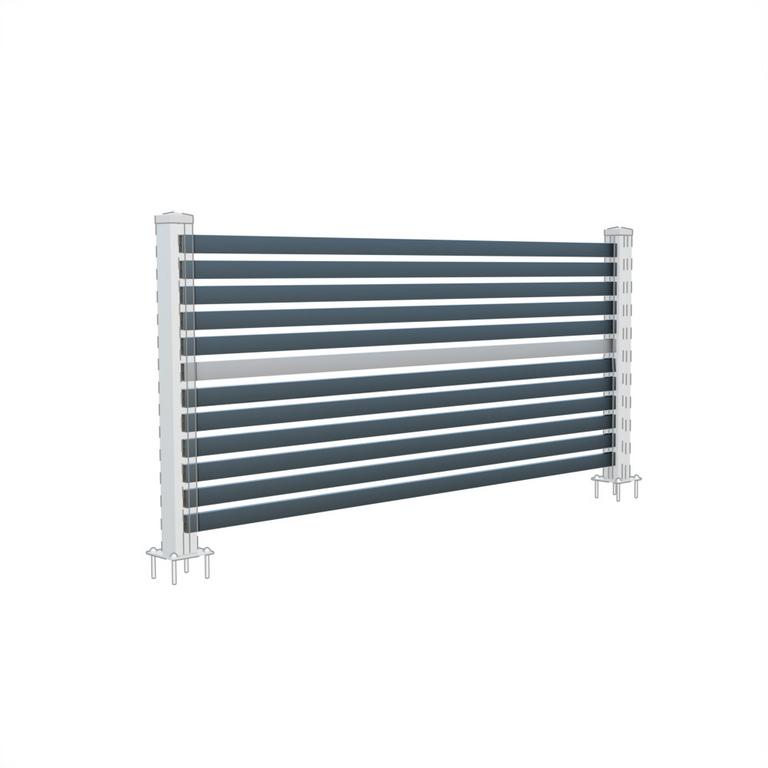 Instalace tohoto modulárního hliníkového oplocení je jednoduchá a flexibilní. Sady lamel lze instalovat mezi sloupky pro volně stojící dílce nebo mezi profily pro kotvení do stěny rsp. do zídky. Spojovací materiál na konci lamely pomáhá zpevnit celou konstrukci.
