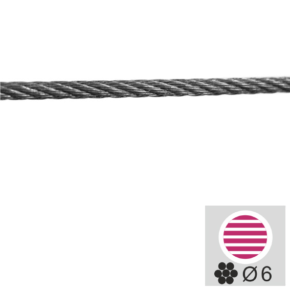 Materiál: Nerez AISI 316, Povrchová úprava: Surový stav, Výplň: Lanko, L: 100 m, d: 6