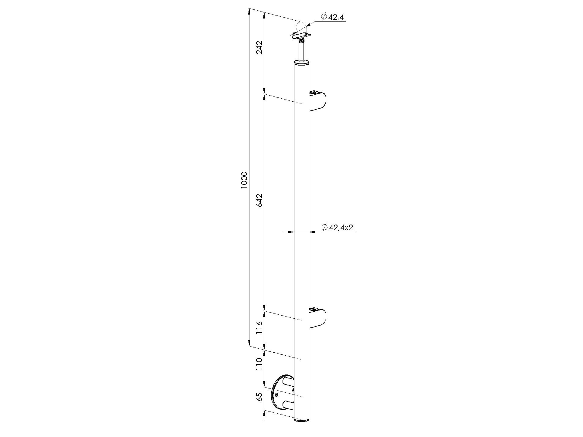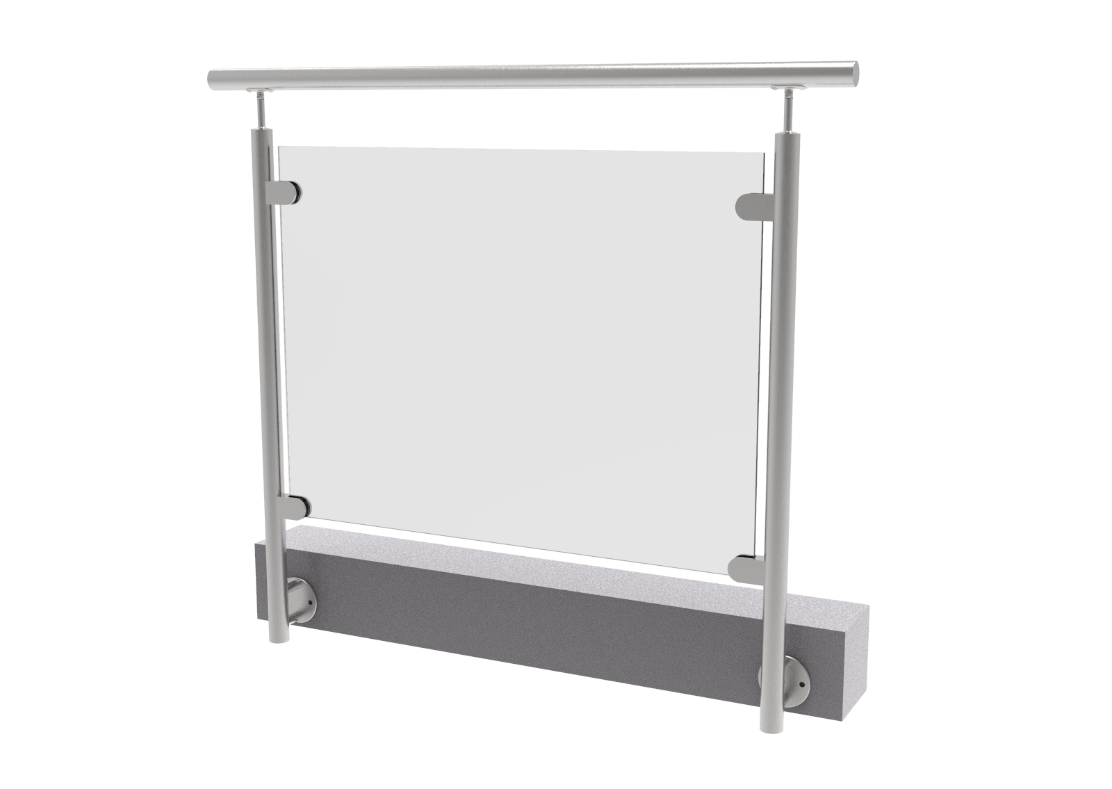 nerezový sloupek D42, 4mm pro madlo D42, 4mm, boční kotvení, materiál AISI 304 brus K320, skleněná výplň. Možnost nastavení sklonu výplně a madla.