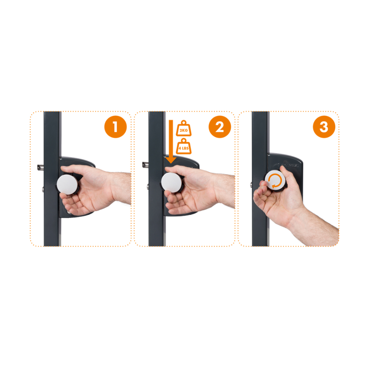 Hliníková otočná koule s dětskou pojistkou určená pro křídlovou bránu.