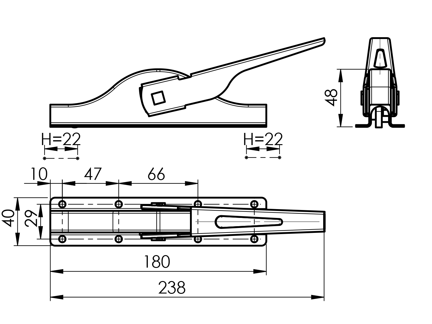 Pákový uzávěr. Povrchová úprava - Zinek. Rozměr táhla max 12x12mm. Táhlo není součástí balení.