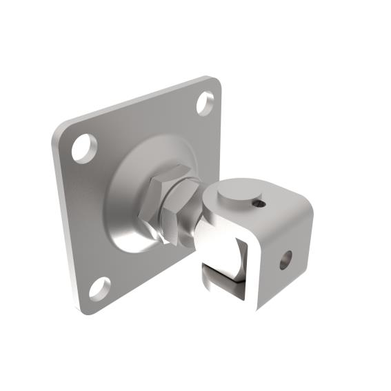 Nerezový nastavitelný závěs s kotvící přírubou 100x100mm, závit M20. Jednoduchá regulace závěsu pomocí otočné matice. Závěs dodáván s kontramaticí.