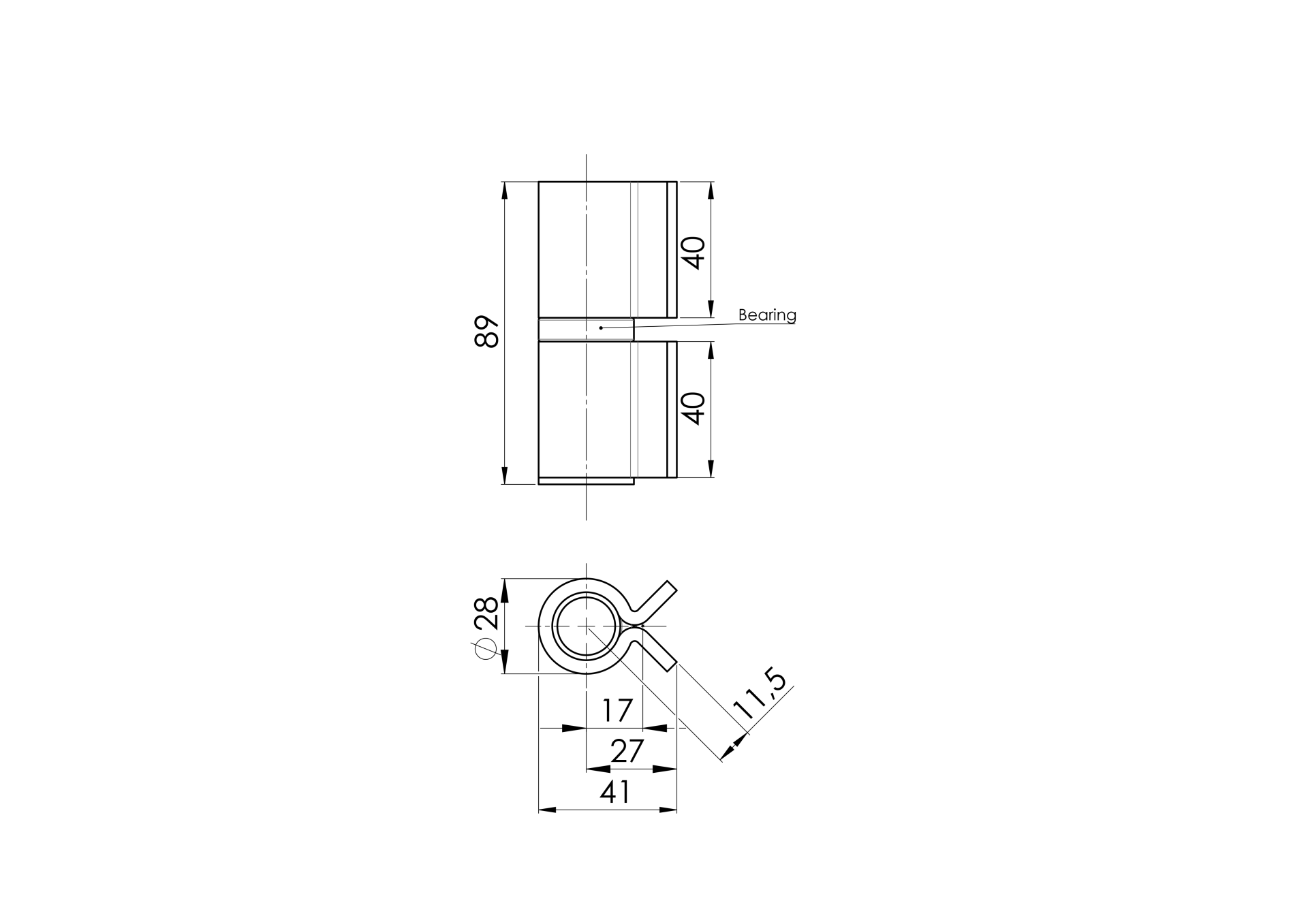 Pant na navaření s ložiskem D28, L90mm