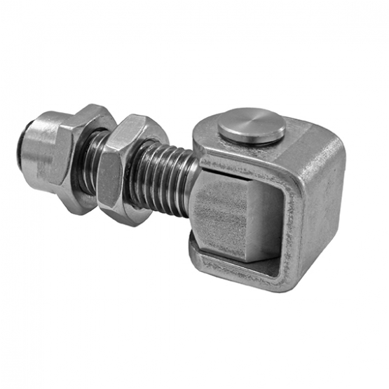 Nerezový nastavitelný závěs s navařenou maticí, závit M20. Regulace možná po sesazení brány.