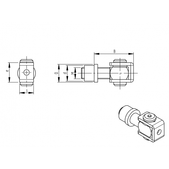 Materiál: Nerez AISI 304, Povrchová úprava: Surový stav, Hmotnost brány Gmax/Goptimal (kg): 100, D: 31, d: 25, e: 37, M: 20, s: 29, B: 50-70