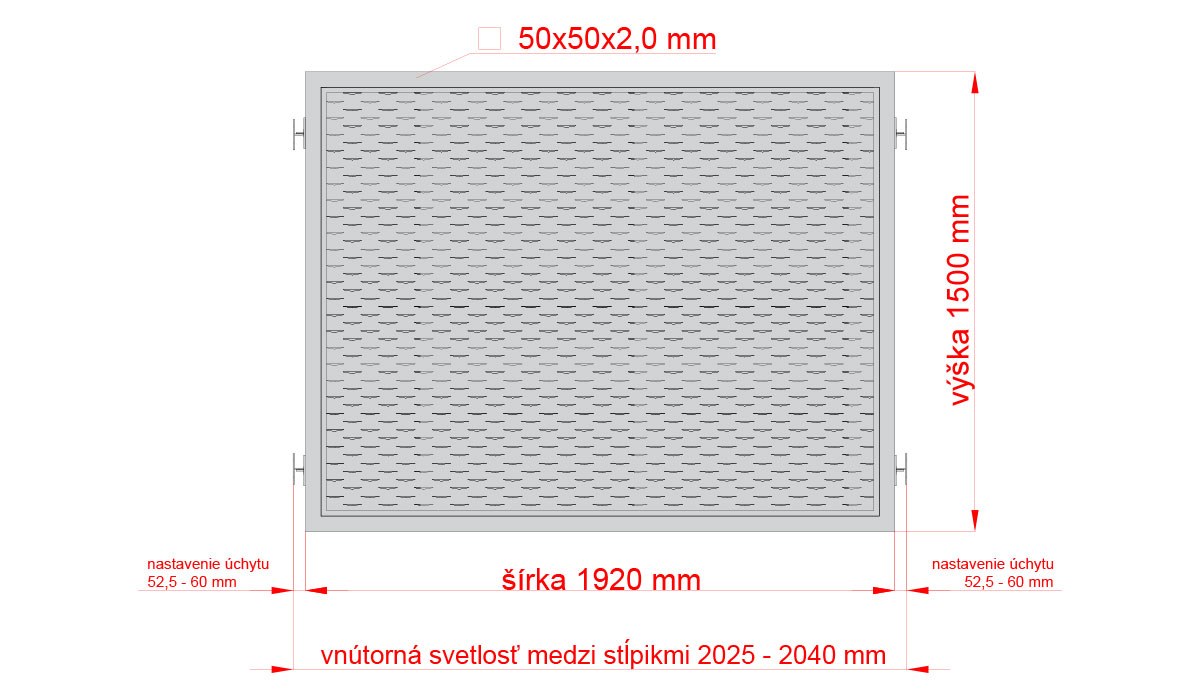 Vnitřní světlost mezi sloupky: 2025 - 2040mm