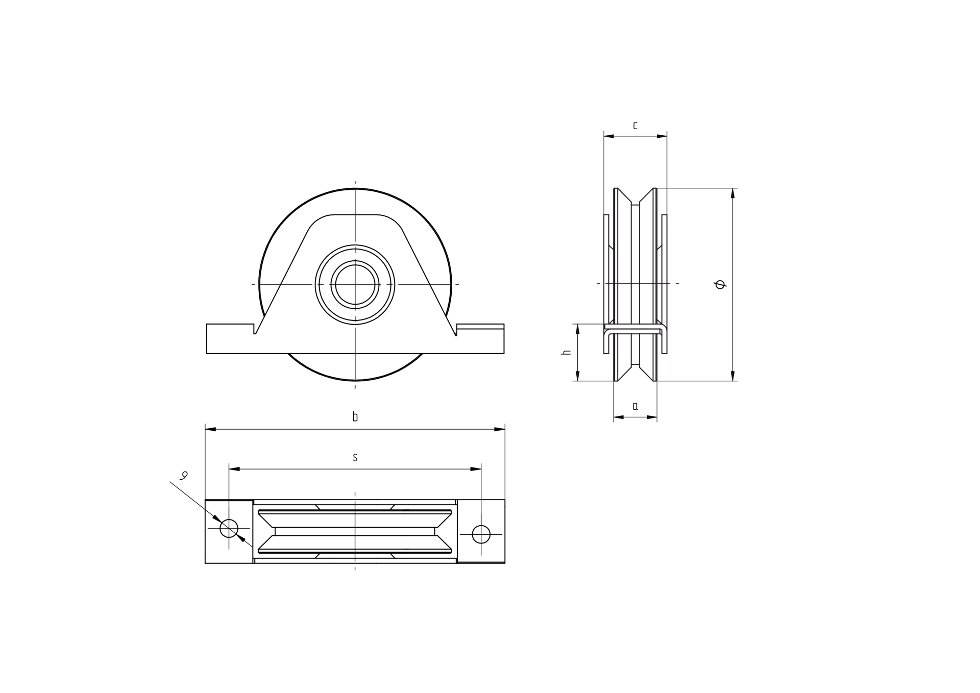 Materiál: Ocel, Povrchová úprava: Zinek, Značka: Umakov, Hmotnost brány Gmax/Goptimal (kg): 300, c: 32, H: 44, h: 29, Phi: 98, a: 22, b: 150, s: 127
