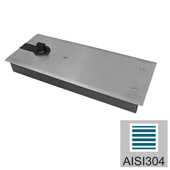 Podlahový samozavírač pro šířky dveří do 1300mm a do 150kg Otevření max 130°°. Aretace při 90 stup. Vrchní deska nerez Pro sklo 8-12mm Možnost regulace rychlosti zavírání a dovření.