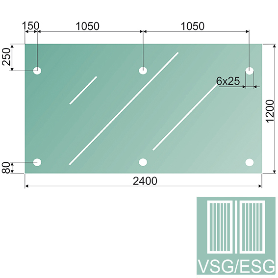 Materiál: Sklo, Povrchová úprava: Kalený, Glass t: 12,76, Vzhled: Čiré, a: 2400, b: 1200, Quality: VSG/ESG