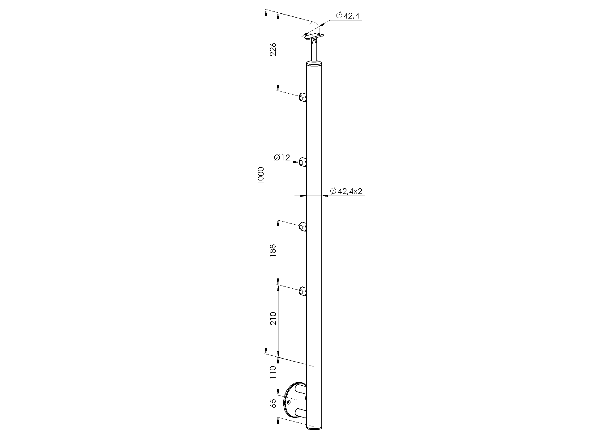 Sloupek nerezový, BK-schod, lesk AISI304, D42,4x2/
