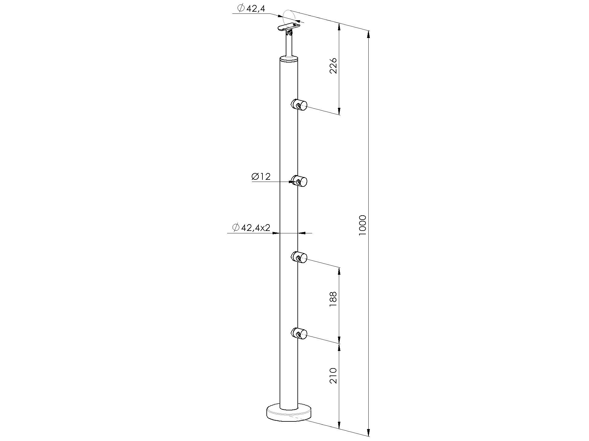 Sloupek nerezový, vrchní kotvěni, schodiště