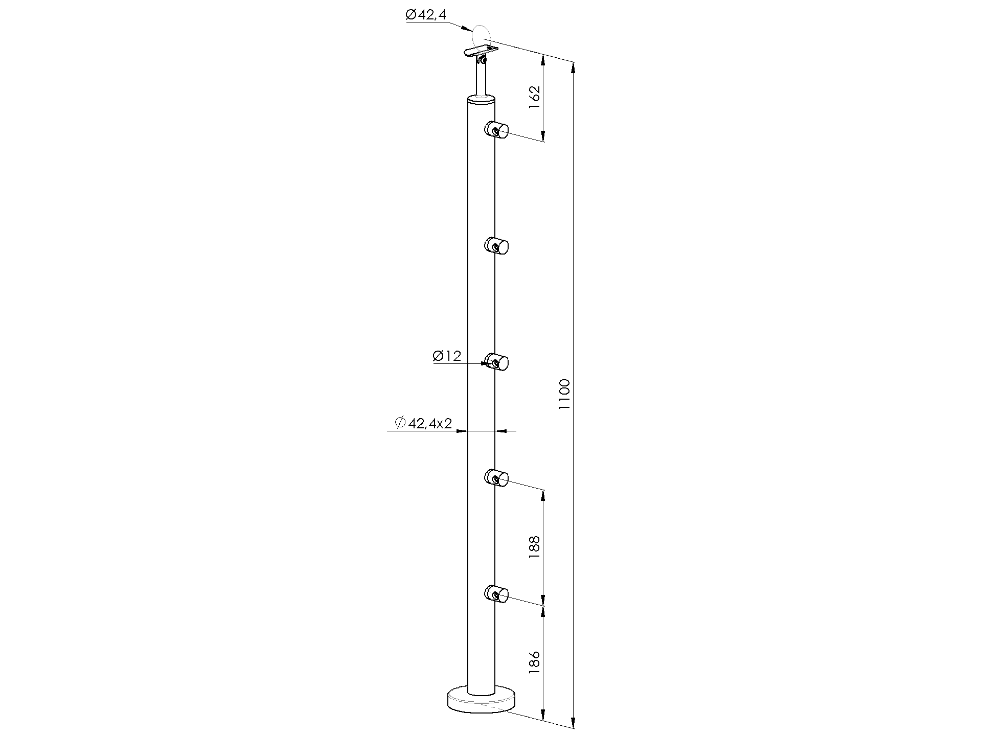 Sloupk antikor D42,4/5x12mm, v=100cm,VK-schod,lesk