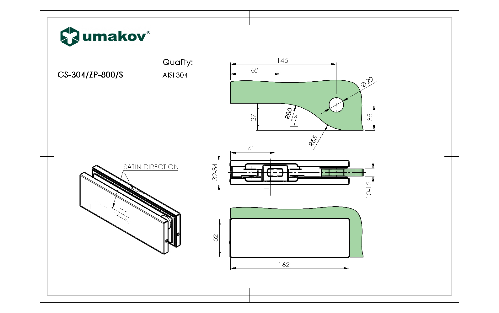 Materiál: Nerez AISI 304, Povrchová úprava: Brus, Glass t: 10-12, Otvor ve skle: Ano