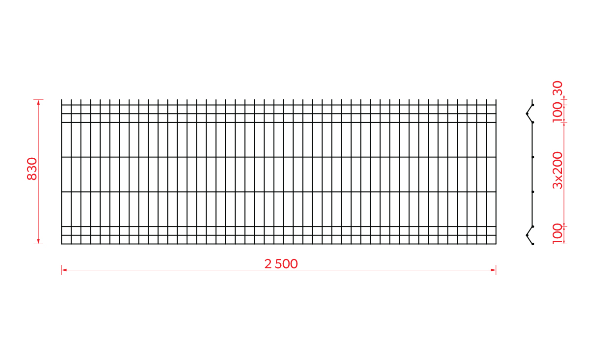 Svařované plotové panely se dodávají ve standardních velikostech o šířce 2500 mm a výšce 830 mm, 1030 mm, 1230 mm, 1530 mm, 1730 mm a 2030 mm. Tloušťka pozinkovaného a poplastovaného drátu pro 3D panel je 4 mm nebo 5mm.