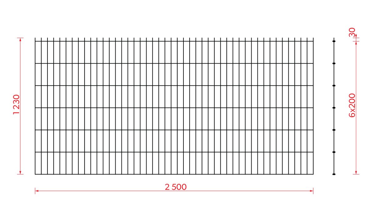Průměr drátu: horizontální 2 x 5 mm, vertikální 4 mm.