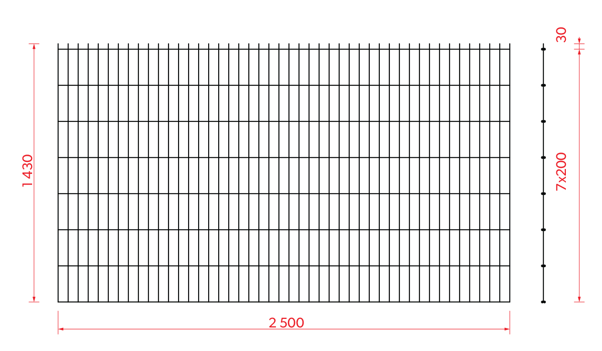 Průměr drátu: horizontální 2 x 5 mm, vertikální 4 mm.