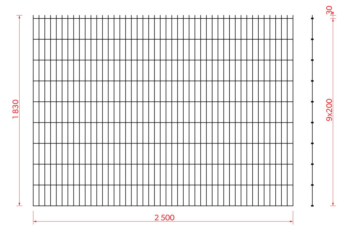 Svařovaný plotový panel N2D 2500x1830mm D5/4/5mm antracit